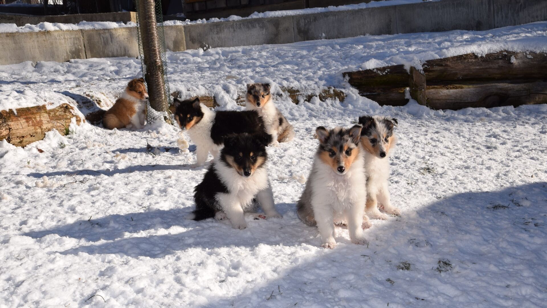 7 Wochen alt sind sie jetzt. Der Tag wird hauptsächlich draussen im Welpengarten verbracht. Zur grossen Freude, konnten die Welpen auch schon den ersten Schnee erleben. Was für eine Freude!